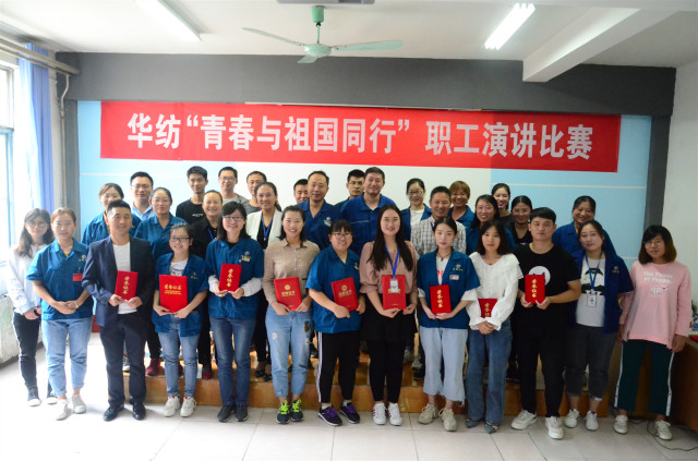 導讀:9月19日,公司舉辦主題為“青春與祖國同行”職工演講比賽,九位選手用款款深情的講述,詮釋了華紡員工熱愛祖國、傾心事業的情懷。