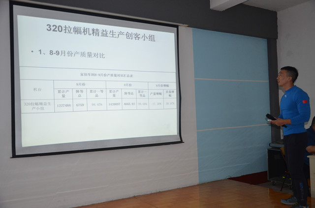 10月11日,公司家紡車間在職工大學大教室舉行了9月份精益生產總結會,對車間9月份的精益生產運行情況進行總結,并對相關問題進行剖析。各主要精益生產承包小組對自身的成績以及不足進行總結,并制定了后續(xù)改進計劃和提升目標。會議由車間技術主管鄭凱主持,車間主任王旭洲進行了全面總結并對持續(xù)深化精益生產工作提出了新要求。