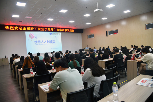 交流會上,孫玉濤圍繞企業(yè)概況、福利待遇、人才隊(duì)伍建設(shè)及人員需求進(jìn)行介紹并現(xiàn)場答疑。花布車間化驗(yàn)室打樣員邱淑超、化工工業(yè)公司技術(shù)員尚高揚(yáng)作為山東輕工職業(yè)學(xué)院校友,以他個(gè)人在公司的成長經(jīng)歷,生動地為學(xué)生們分享了職場經(jīng)驗(yàn)。在人才方面,公司尤其重視對青年一代的培養(yǎng),特別歡迎有志青年加入公司,為公司發(fā)展注入年輕活力。