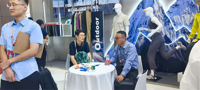 本次參展,公司集中呈現(xiàn)了涵蓋服裝、高端功能性面料、家紡成品、航空文創(chuàng)聯(lián)名SKYKITS服裝與床品等多類產(chǎn)品,全面展示了公司在產(chǎn)品研發(fā)與工藝創(chuàng)新方面的深厚積累。展位現(xiàn)場吸引了大量海內(nèi)外客商駐足交流,氣氛熱烈。來自全球的多家采購商和品牌代表與公司團(tuán)隊(duì)進(jìn)行了深入洽談,并表現(xiàn)出積極的合作意向。