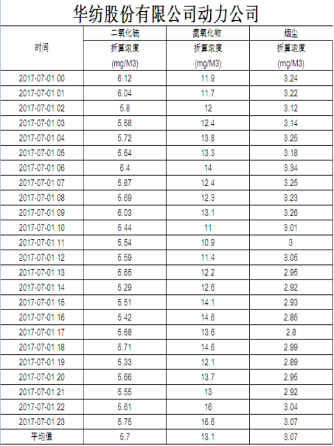 煙氣排放數據信息公開2017.7.1數據