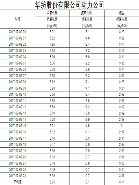 煙氣排放數據信息公開2017.7.2數據