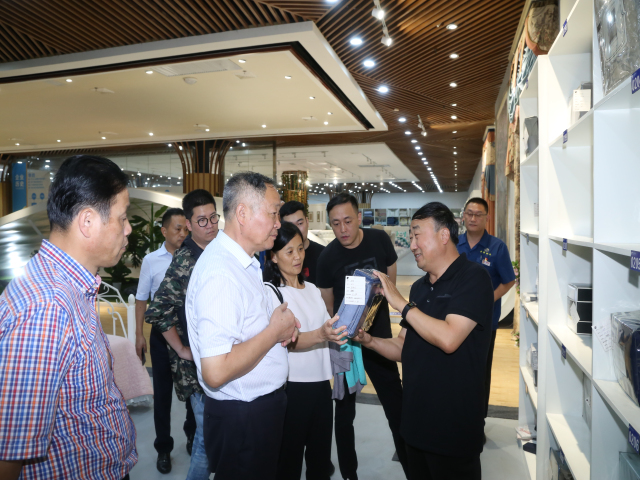 公司黨委書記董事長王力民向考察組一行介紹了公司在轉型升級、產品研發、課題攻關、品牌建設等方面的情況。考察組先后到公司家紡展廳、家紡成品車間、立體倉庫、創意中心、工程技術研究院等處進行現場考察。